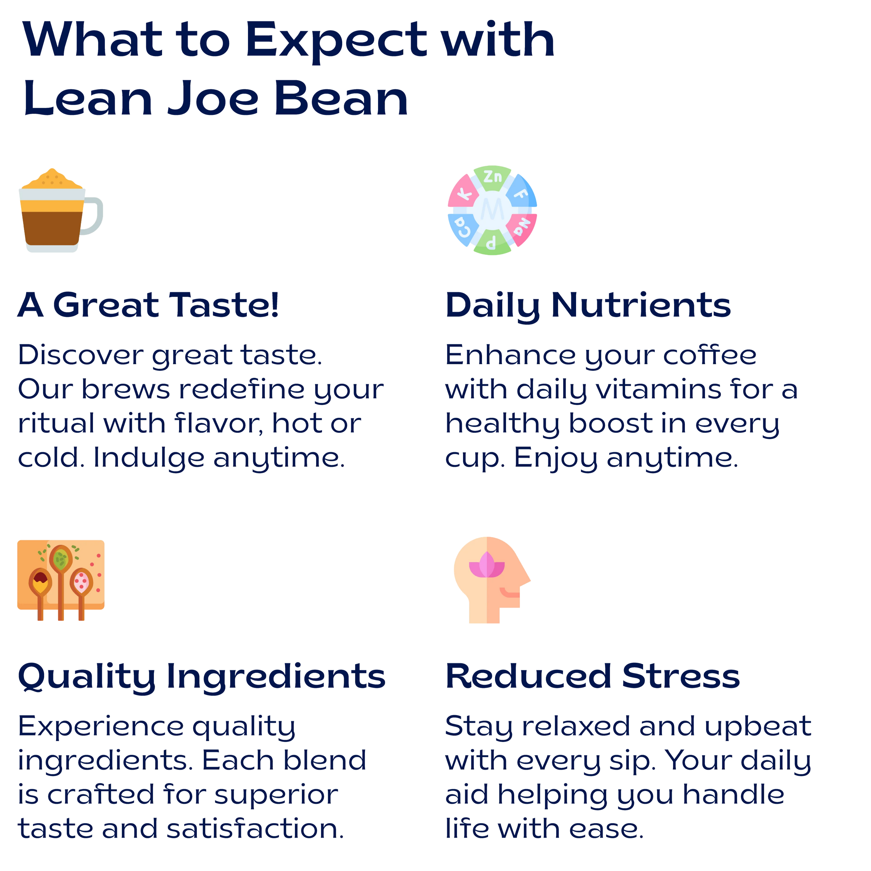 Lean Joe Bean Coffee is an instant coffee mix that is prepared by adding the mix to hot or cold water, as you prefer. It is not made using a coffee maker or machine, which makes it even more convenient for you. No special equipment is required to make our coffee.